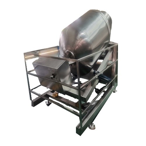 真空滾揉機是利用物理沖擊原理,讓物料在桶內上下翻,撞擊,摔打,起到按摩腌漬的作用,真空滾揉機一般和鹽水注射機搭配使用。